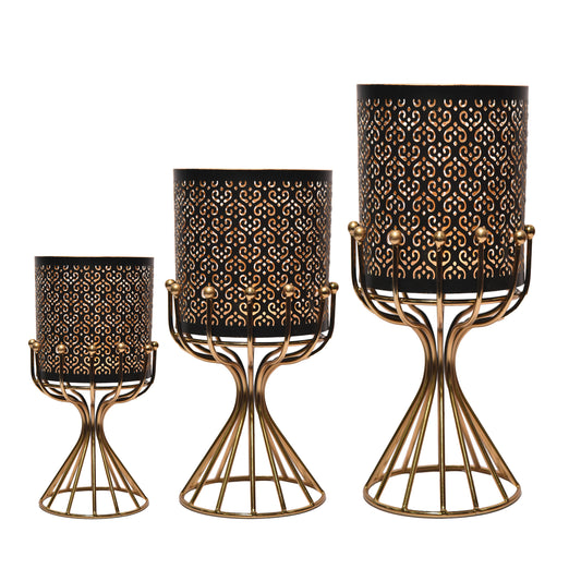 SET OF 3 Metal Planters in Black and Gold Finish/ Metal Candle Stand with Exquisite Finish